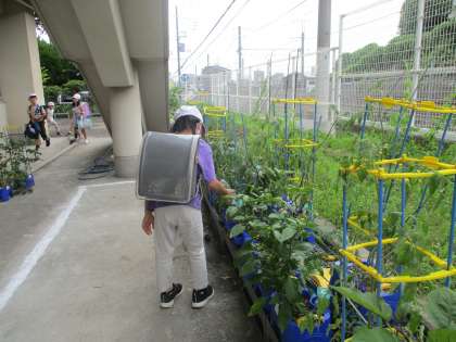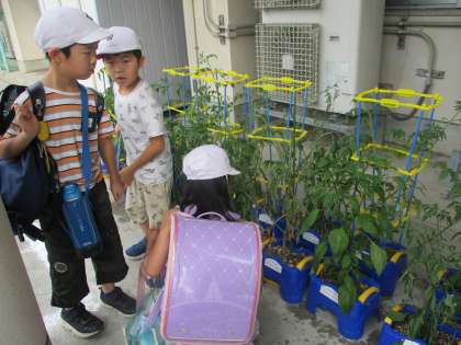 2年生の野菜が大きく生長しています。子どもたちは、毎朝水やりと観察をしています。