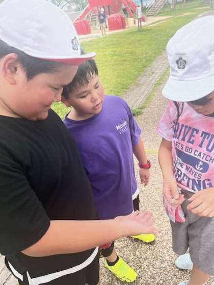 ヤモリやバッタ、蝶などの虫や生き物とふれあっています。