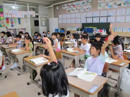 「おおきなかぶ」の学習をしています。ひっぱる練習、自分の役の練習、読む練習、かぶのぬけかたを考える、の中から今日は、読む練習をします。
