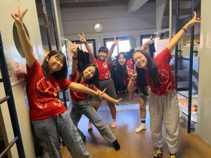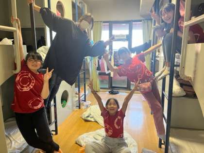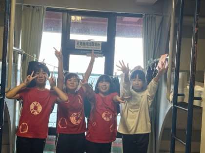 お部屋に入りました。濡れた水着や体操服を干しています。