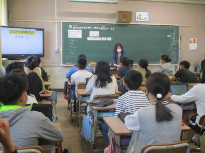 栄養教諭の先生が鳳小学校から食育の授業をしに来てくれました。今日のめあては、「献立の立て方を知り、1食分の献立を立てよう」です。子どもたちからは、献立を考えるのに大切なことは、栄養、愛情、食べやすさ、美味しさだと意見が出ていました。どんな献立ができるかな?