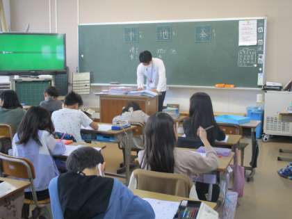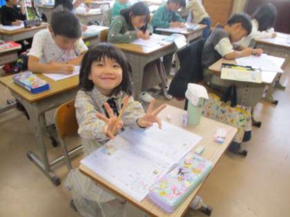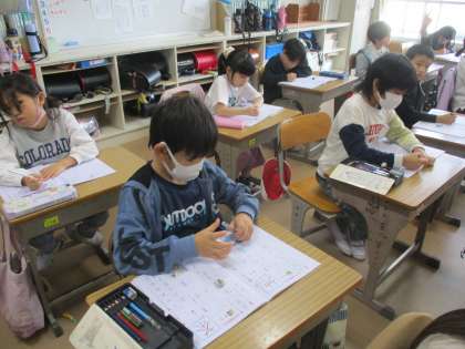 新出漢字の練習をしています。「はねる」ところ「とめる」ところに気をつけて書いています。