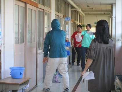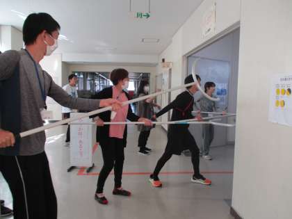 「本当に学校に子どもがいるのかわからないほど静かに訓練していましたね。」とお褒めの言葉ももらいました。教職員もさすまたをもって、訓練しました。いざというときは、落ち着いて素早く行動するためにもしっかり訓練に取り組んでいます。