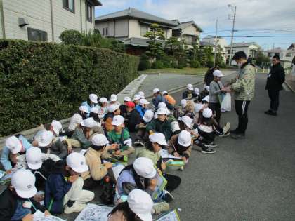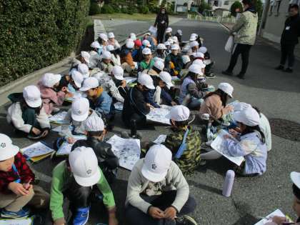 まず学校から津久野幼稚園を通り,下田公園まで歩きました。