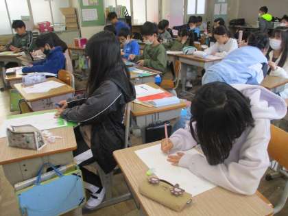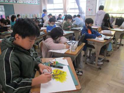 読書感想画に取り組んでいます。はり絵にしたり切り絵にしたりなど工夫をしています。
