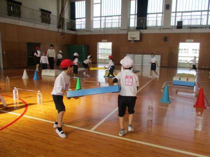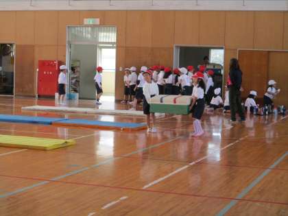 入学して7か月。体育の準備も友だちと協力して、しっかりできます。