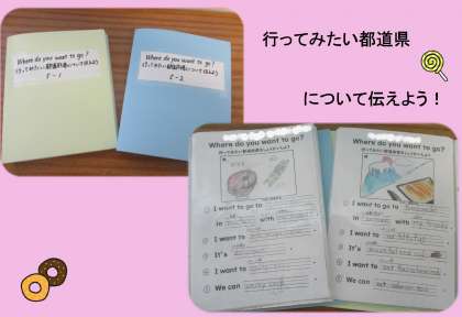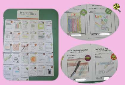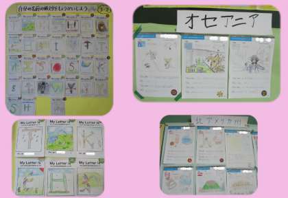 外国語教室の掲示です。子どもたちの頑張った作品が掲示されています。
