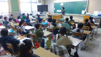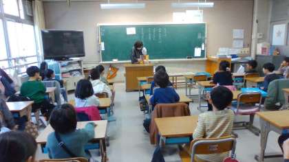 朝の読書の時間に山本先生に読み聞かせをしてもらいました。