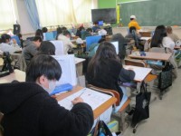 学級代表を決めています。 立候補者が決意を述べています。