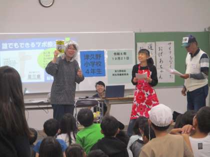 また、「ツボ講座」では、認知症の対策になる「ツボ」を教えてもらいました。ぜひ、子どもたちに聞いてお家でも実践してみてください。