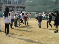 大なわ大会に向けて練習をしています。1年生は,くぐり抜けるだけでもOKです。