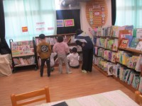 図書の先生と一緒に本をさがしています。次は,どんな本を借りようかな?