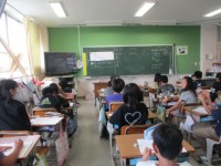「秋の楽しみ方」の学習で、秋にはどんな行事があるか発表しています。今日は、中秋の...