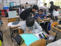 多色刷りに挑戦です。細かく丁寧に彫り進めたあとは,色をつけます。とても鮮やかです...