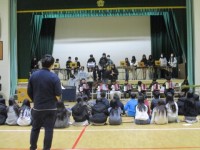 6年生が体育館で,合奏の練習をしています。がんばって!