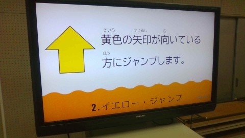 矢印の方向に体を素早く動かす矢印スクワットと、的あてゲームをしました。