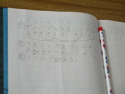 「2とびで数える」や「図を使って考える」「たし算で考える」など、多様な考え方が出てきました。