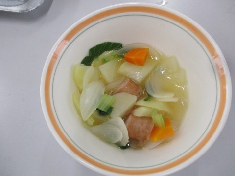 ポトフ作りに挑戦しました。じゃがいもの皮をむいて,にんじんと玉ねぎを包丁で切って,上手に味付けをします。