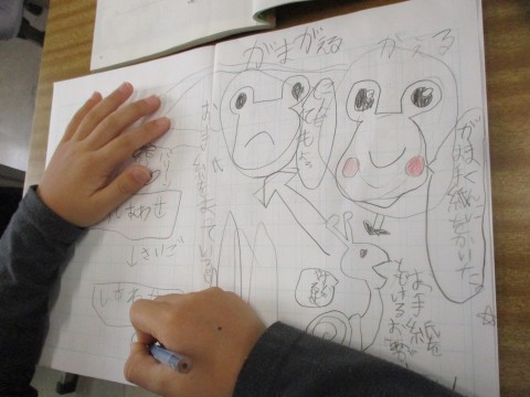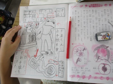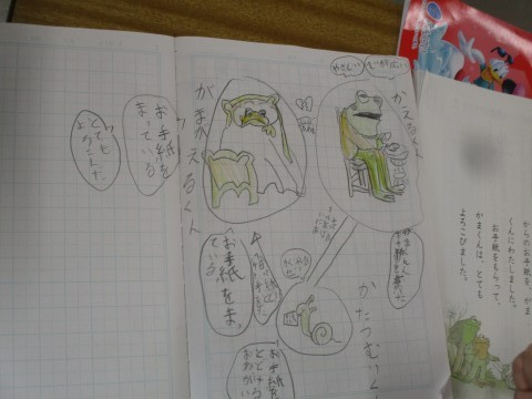 「がまくん」「かえるくん」「かたつむりくん」の様子を思い浮かべながら読んでいきます。