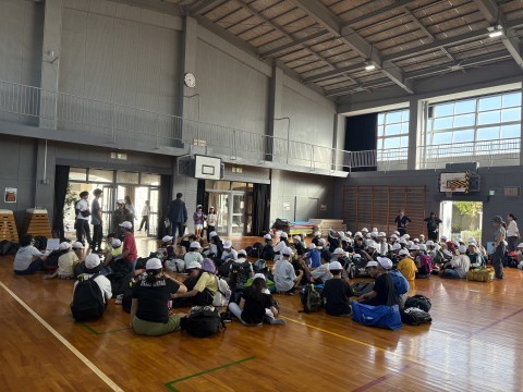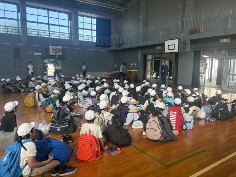 今からバスに乗って、大阪府立青少年海洋センターへ向かいます。