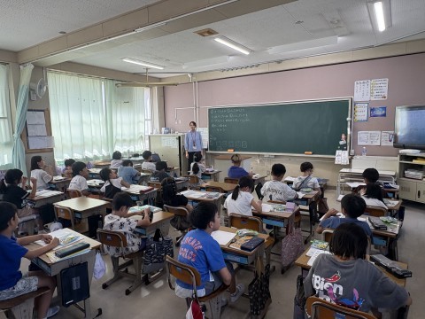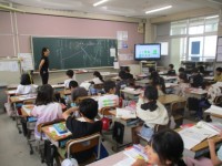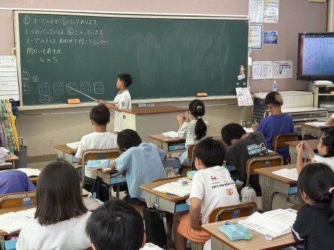 4✖️5の計算の仕方について、前に出てみんなにわかりやすく説明しています。