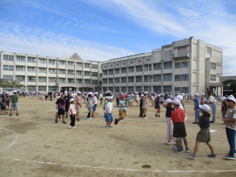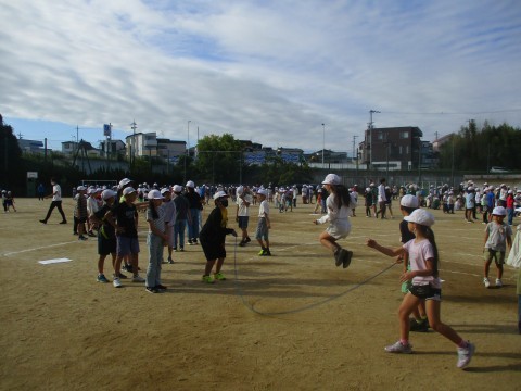 今日の朝の時間は全校での長縄活動(第2回)を行いました。