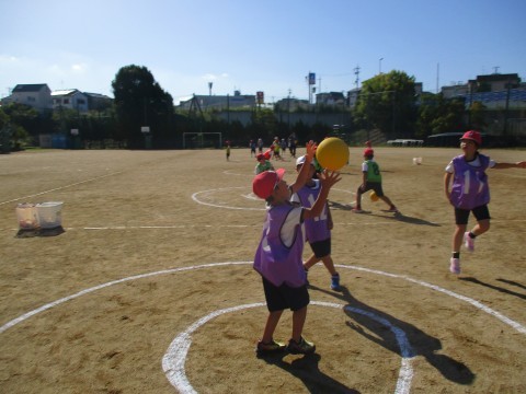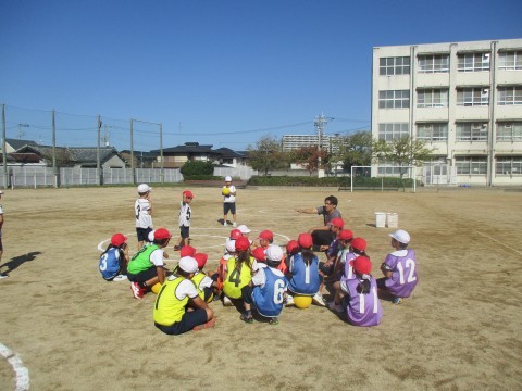 どのようにすればシュートを決めやすいか,友だちと一緒に考えながら子どもたちはボールゲームを楽しんでいます。