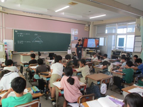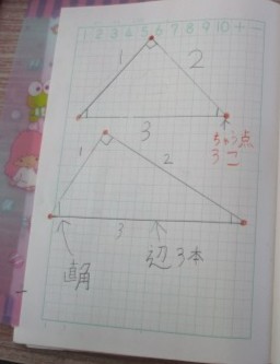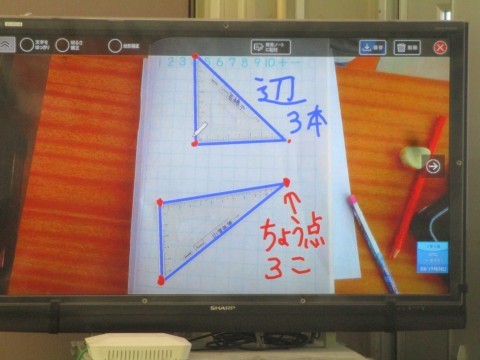 2年2組 算数「三角形」 公開日 2025/10/17 更新日 2025/10/17 2年生 三角形の「頂点」・「辺」・「直角」について学んでいます。三角定規2枚を使って三角形をかき,2つの三角形の「辺の数」や「頂点の数」・「直角の場所」について確認していました。 +1