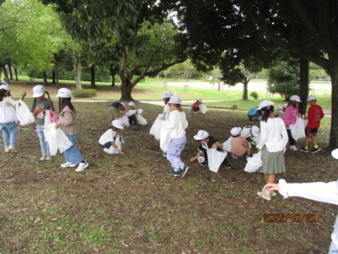 お昼からは,秋見つけに行きました。どんぐりやきれいな葉っぱを見つけて,みんな秋を感じていました。今日見つけたものを朝顔のリースにつけていきます。