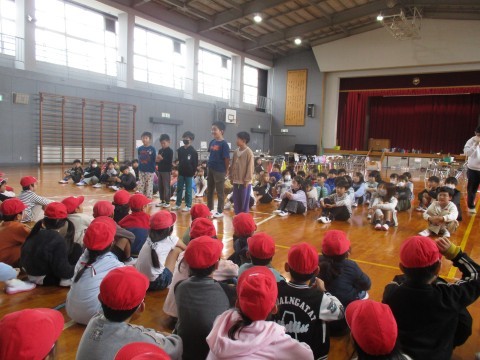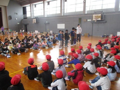 2年生の代表のあいさつを終え,1・2年生の交流「おもちゃランド」が始まりました。