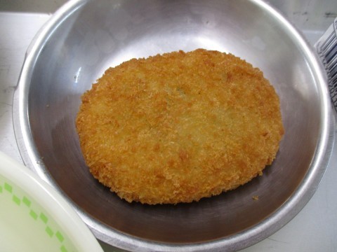 堺産の『小松菜』が入っていて,堺のめぐみを感じる特別なコロッケを食べてください。