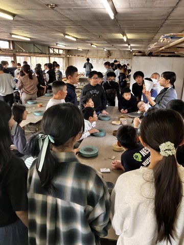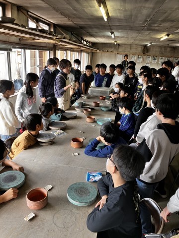 信楽焼の体験が今から始まります。どんな作品を作ろうかな。説明をしっかりと聞きます。