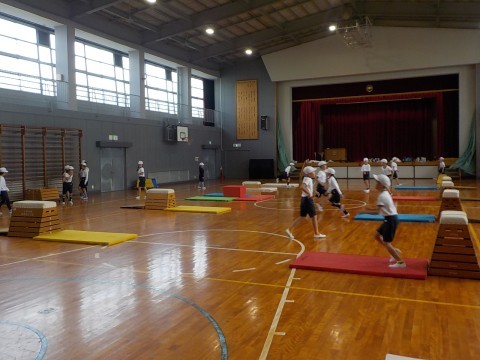 安全に楽しく運動ができるように、きちんと準備をしてから跳び箱運動に取組みました。