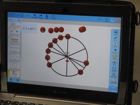 玉入れを同時にする時に人数を増やしていく場合,どのように並べば公平かを考えて,円の形に気づいていきます。