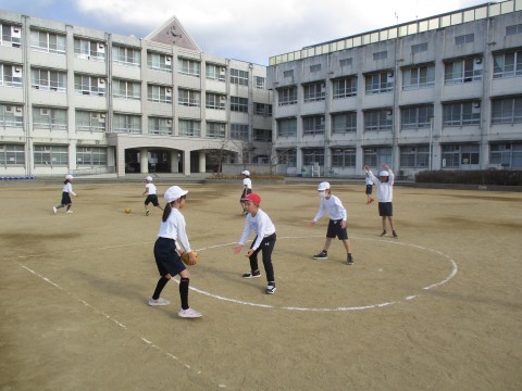 すきまを見つけてゴールを決める「サークルシュートゲーム」の授業の様子です。
