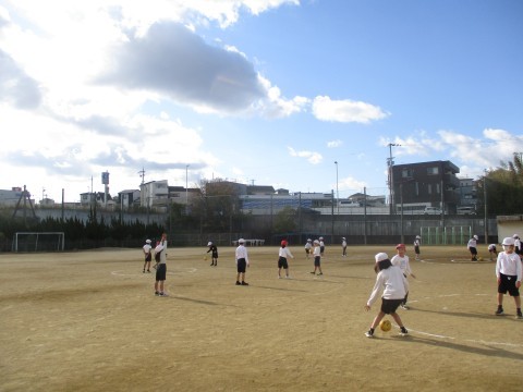 どのように動いたり,パスを回したりすればゴールを決めることができるか,考えながらゲームを楽しんでいます。