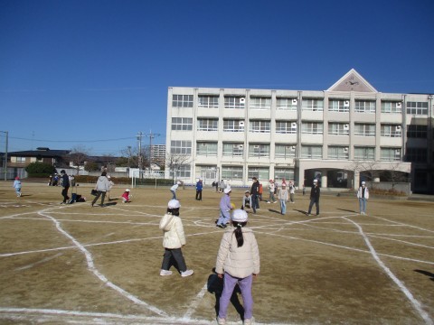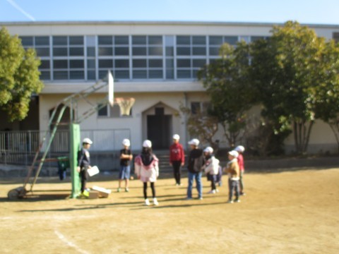 6年生と1年生が交流会を行っていました。6年生が考えた遊びで1年生が遊んでいます。