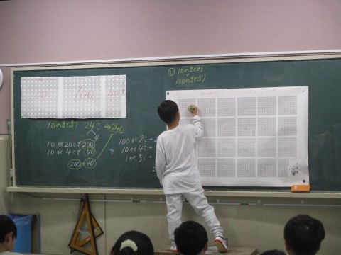 2年1組 算数「1000より大きい数」 公開日 2026/01/14 更新日 2026/01/14 2年生 1000より大きい数について調べています。10や100のまとまりを意識しながら考えた解決のしかたを,たくさんの児童が前に出て発表していました。 +1