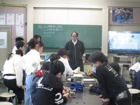 手回し発電機を回す「向き」や「速さ」などにも着目して実験していました。