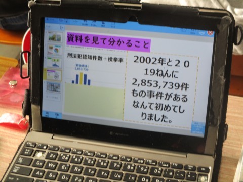 3年1組 社会「事こや事けんから人びとを守る」 公開日 2026/01/19 更新日 2026/01/19 3年生 棒グラフや円グラフなど,様々な資料を見てわかることをタブレットに打ち込み,共有していました。 +1