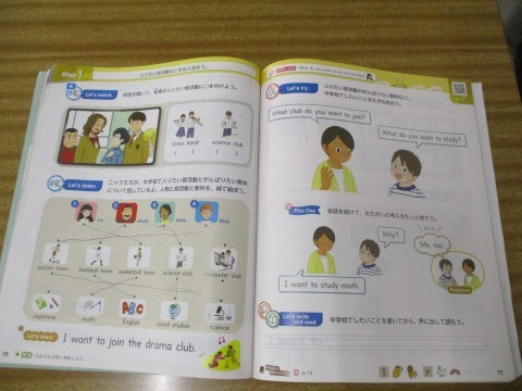 今回は,中学校でがんばりたい教科,入りたいクラブについてたずね合っていました。