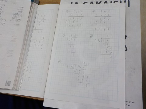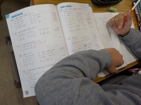 小数の割り算での、小数点の移動については、特に気を付けて問題に取り組んでいました。