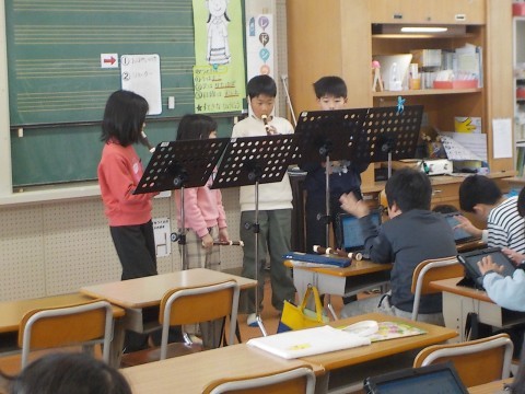 今日はその発表会です。どのグループも協力し合って、リコーダーで上手に演奏することができました。