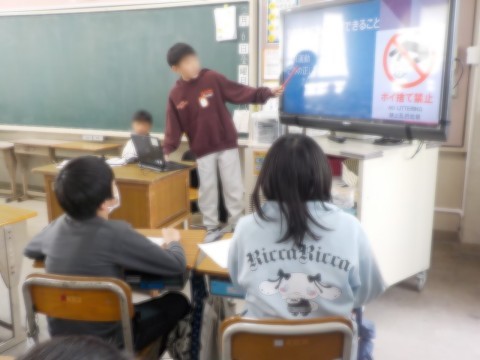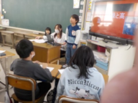 今日は、これまでの学びを一人ひとりがスライドにまとめ発表しました。自分が調べたこととの共通点を見つけながら、熱心にお互いの発表をきくことができました。