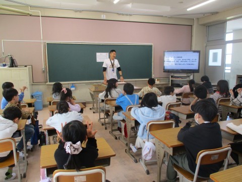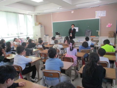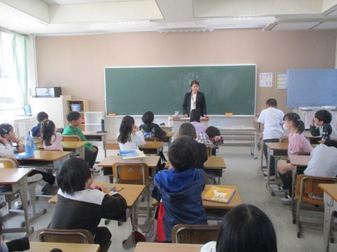 3年生の様子です。みんな先生の話にくぎ付けです。たくさんの配布物を配って自己紹介をした後、明日へ向けてのお話を聞きます。これからの1年が楽しみです!