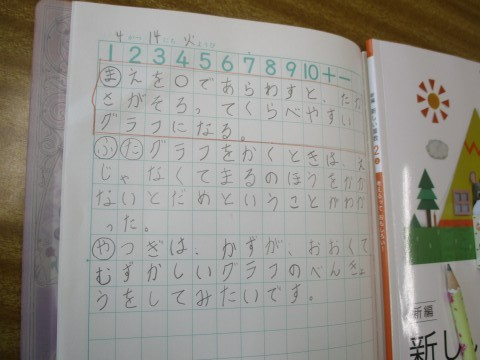 2年2組 算数「グラフとひょう」 公開日 2026/04/14 更新日 2026/04/14 2年生 わかりやすくあらわすにはどうしたらいいかな?「〇」を使ったグラフに表しています。「たい」大切なこと「や」やってみたいこと「き」気づいたこと「おいしい」おいしいなと思ったこと「な」なるほどなと思ったことについて、学習の『ふりかえり』を書いていました。