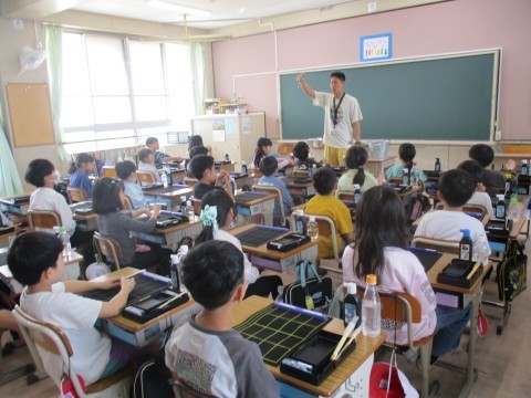 3年3組 書写「習字道具の使い方」 公開日 2026/04/20 更新日 2026/04/20 3年生 初めての習字の授業の様子です。習字道具の使い方、筆の持ち方などについて丁寧に指導しています。子どもたちは先生の話を真剣に聞きながら、準備を進めていました。 +1