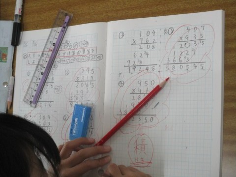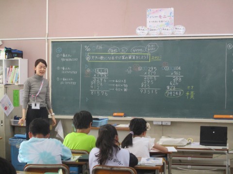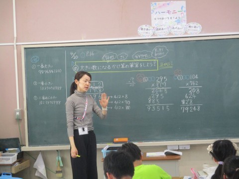 4年3組 算数「大きい数になるかけ算」 公開日 2026/04/20 更新日 2026/04/20 4年生 大きい数になるかけ算のひっ算の仕方について考えています。正確に計算するためにはどのようなことに気を付ければいいかな。かけ算の答えのことを「積」と言うことも学んでいました。 +1