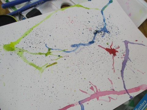 4年2組 図工「いろいろな技法を使って」 公開日 2026/04/21 更新日 2026/04/21 4年生 水で濡らして滲ませる「にじみ・たらしこみ」、網とブラシで絵の具を飛ばす「スパッタリング」、絵の具をストローで吹く「吹き流し(ドリッピング)」など、様々な技法を使ったオリジナルの作品作りを行いました。楽しみながらすてきな作品ができましたね。 +2