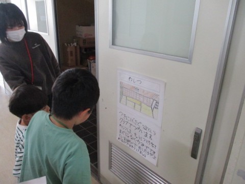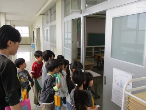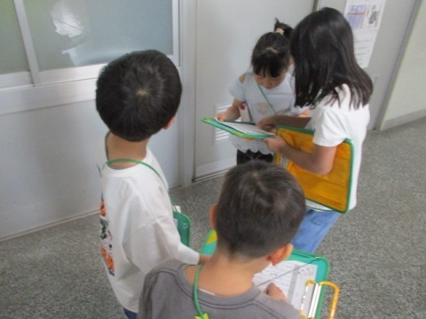1年生と2年生で学校探検をしました。
